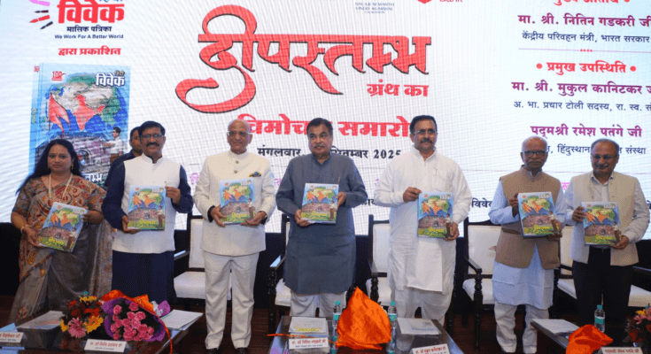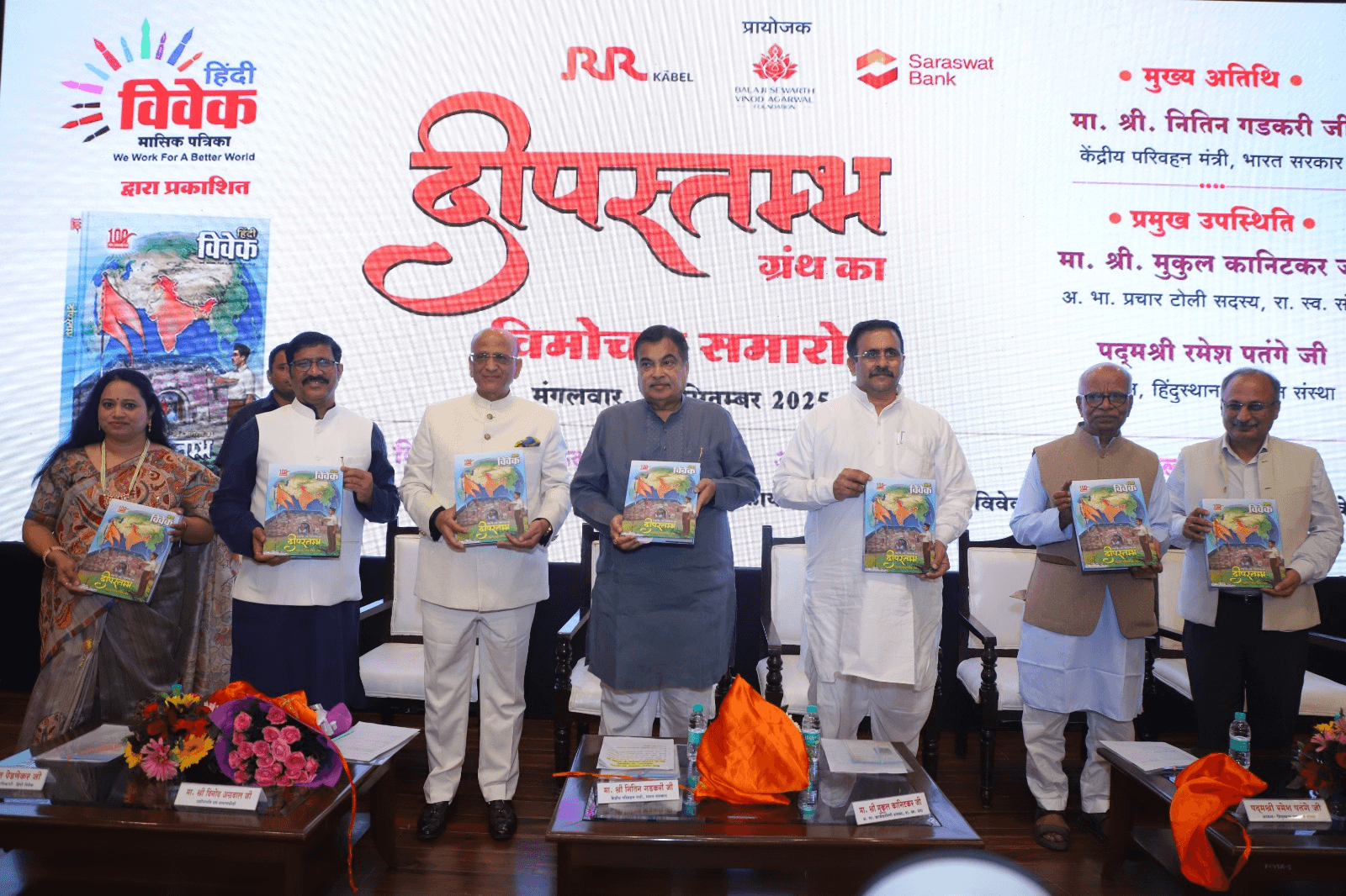 हिंदी विवेक अपनी स्थापना से समाज एवं राष्ट्र को वैचारिक दिशा देने का कार्य कर रहा है. सामाजिक, राजनैतिक, शिक्षा, आर्थिक, आदि सर्वांगींण क्षेत्रों में संघ स्वयंसेवक संघ की प्रेरणा से उल्लेखनीय कार्य कर रहे हैं और अपना महत्वपूर्ण योगदान दे रहे हैं. इनके प्रेरणादायी कार्यों को समाज तक पहुंचाने हेतु हिंदी विवेक द्वारा राष्ट्रीय स्वयंसेवक संघ के शताब्दी वर्ष के अवसर पर ‘दीपस्तम्भ’ ग्रंथ प्रकाशित किया गया है. आनेवाली पीढ़ियों को भी यह ग्रंथ मार्गदर्शन करता रहेगा, ऐसा मेरा पूर्ण विश्वास है, यह वक्तव्य केंद्रीय परिवहन मंत्री नितिन गडकरी ने हिंदी विवेक के ‘दीपस्तम्भ’ ग्रंथ के विमोचन समारोह के दौरान दिया. वे नई दिल्ली स्थित न्यू महाराष्ट्र सदन में आयोजित इस कार्यक्रम में मुख्य अतिथि के तौर पर बोल रहे थे.