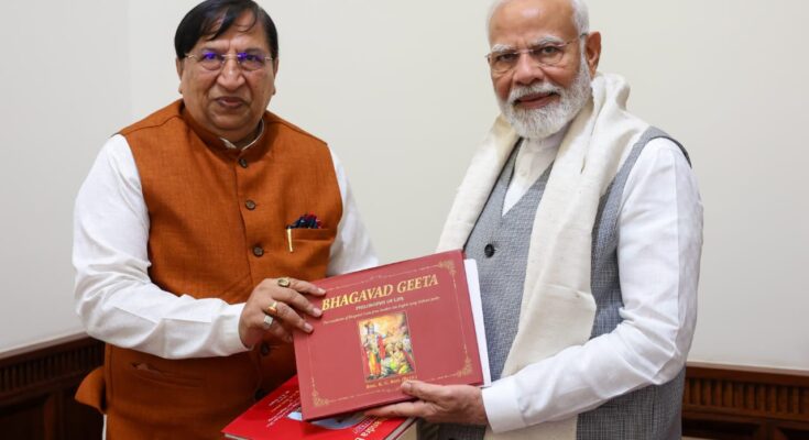 BJP Leader Naresh Bansal: भाजपा राष्ट्रीय सह-कोषाध्यक्ष व सांसद राज्य सभा डा.नरेश बंसल ने की प्रधानमंत्री नरेंद्र मोदी जी से भेंट, गंगाजली ,रुद्राक्ष की माला,हिमाद्री का बना शाल व विभिन्न पुस्तके भेंट की