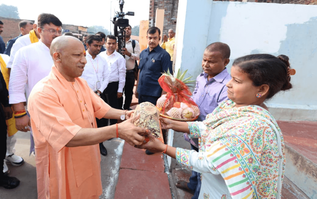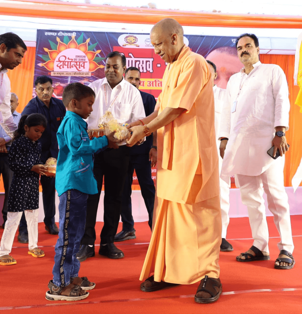 CM Yogi celebrates Diwali in Ayodhya’s Nishad Basti, distributes sweets and gifts to children