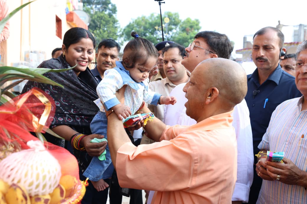 CM Yogi personally distributed sweets, fruit baskets, and gifts door-to-door in Matgaid Mohalla, Ward No. 31 Devkali, and Kandharpur (Manjhi Nagar) Nishad Basti (Ward No. 1 Abhiram Das). Children were delighted as he handed out chocolates, toffees, and sparklers.