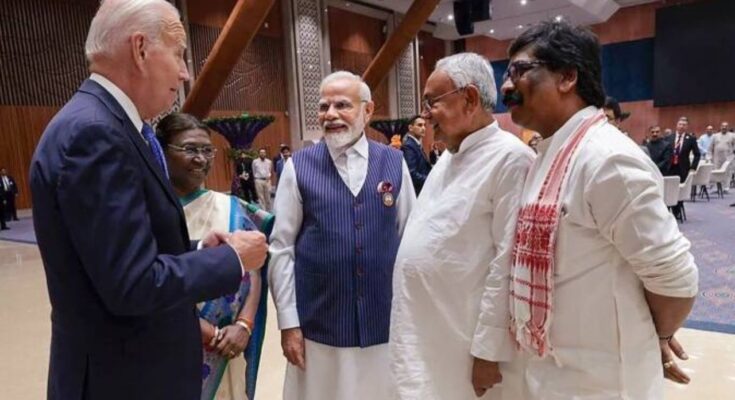G20 Summit 2023 के डिनर में बिहार के मुख्यमंत्री नीतीश कुमार के साथ-साथ झारखंड के मुख्यमंत्री हेमंत सोरेन भी शामिल हुए ।इसके अलावा पश्चिम बंगाल के मुख्यमंत्री ममता बनर्जी तमिलनाडु के मुख्यमंत्री एमके स्टालिन हिमाचल प्रदेश के मुख्यमंत्री सुखविंदर सिंह सुक्कू महाराष्ट्र के मुख्यमंत्री एकनाथ शिंदे भी कार्यक्रम में शामिल हुए।