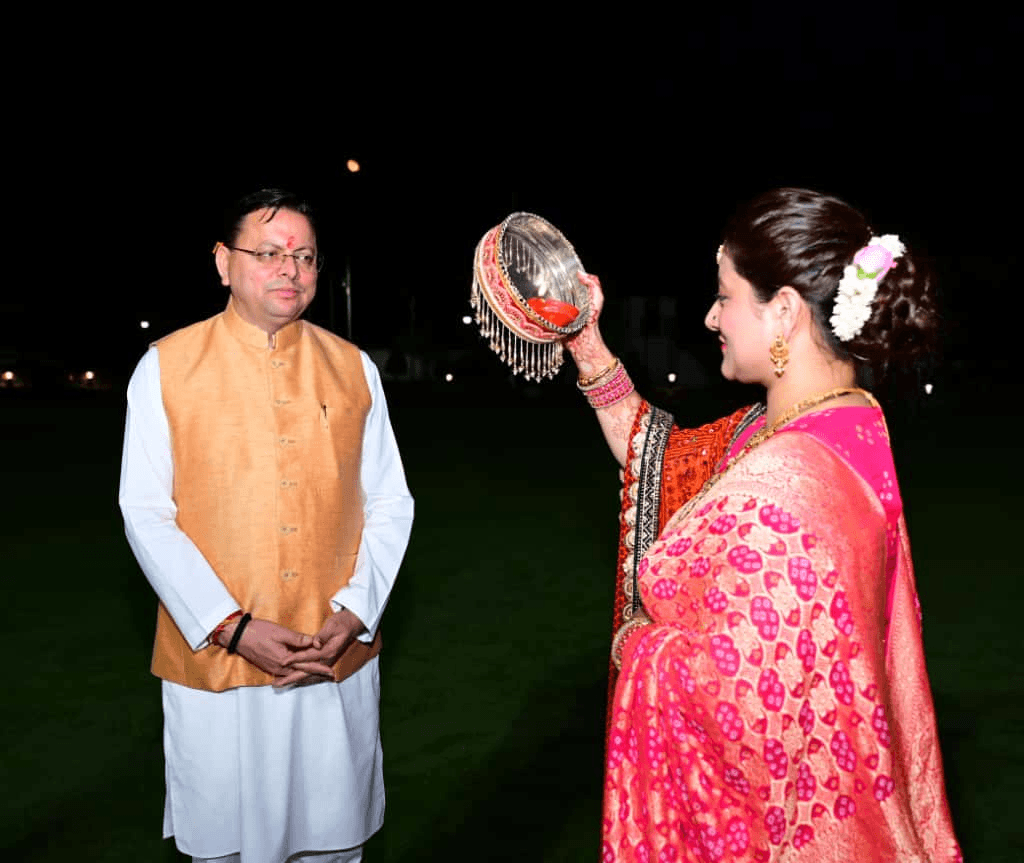 Karva Chauth: मुख्यमंत्री पुष्कर सिंह धामी ने धर्मपत्नी गीता धामी के साथ मुख्यमंत्री आवास में मनाया करवा चौथ उत्सव
