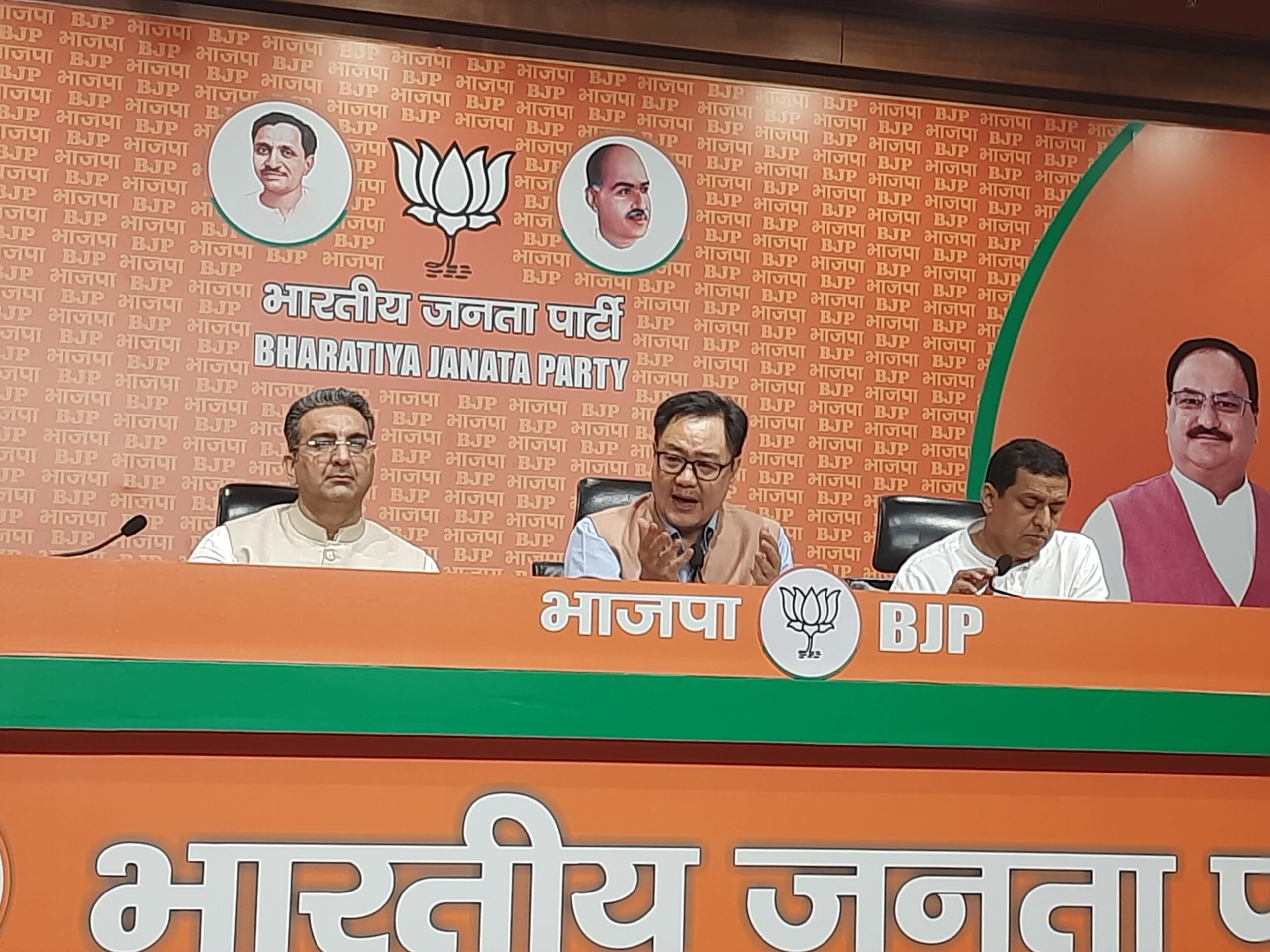 Kiren Rijiju Press Conference: केंद्रीय मंत्री किरन रिजिजू ने प्रेस कॉन्फ्रेंस कर कांग्रेस नेता राहुल गांधी पर जमकर निशाना साधा।