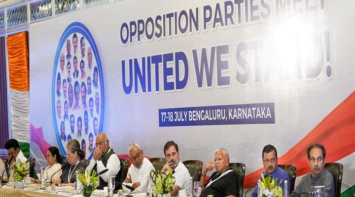 नीतीश कुमार की पार्टी जनता दल यूनाइटेड की तरफ से विपक्षी दलों के महागठबंधन का नाम ट्वीट किया गया जिसमें बताया गया है कि विपक्षी एकता का नाम INDIA रखा गया है। जिसका मतलब है इंडियन नेशनल डेमोक्रेटिक इंक्लूसिव एलाइंस (Indian National Democratic Inclusive Alliance) इसके साथ ही तमाम नेताओं की तस्वीर वाला एक कार्ड भी शेयर किया गया है जिसमें लिखा है दिल मिले ,दल मिले ,हुआ महाजुटान…. देश बचाने के लिए विपक्षी एकता का शुरू हुआ महा अभियान।