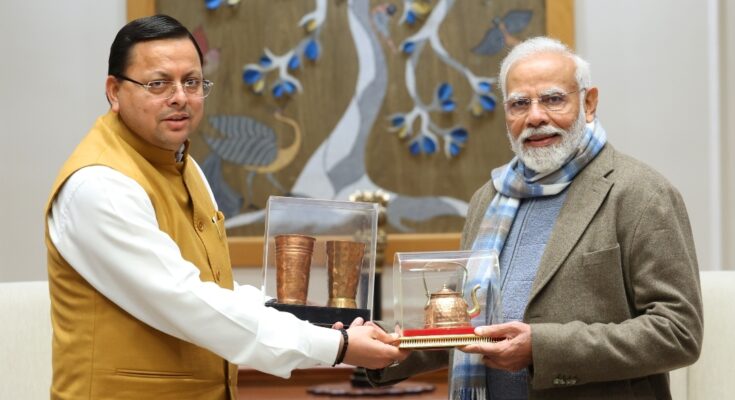 मुख्यमंत्री ने प्रधानमंत्री को उत्तराखण्ड की महिला स्वयं सहायता समूहों द्वारा तैयार की गई सामग्री की भेंट