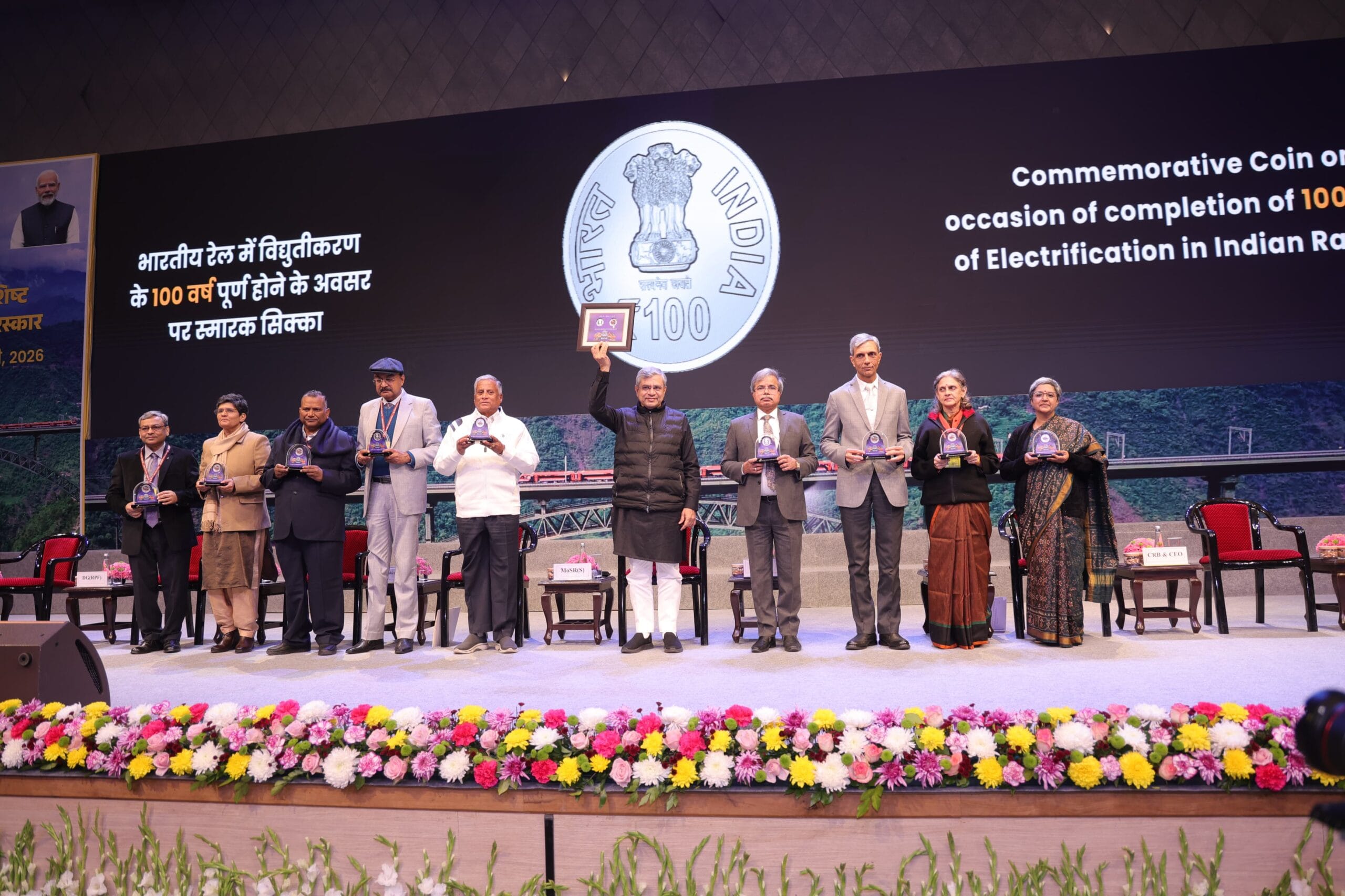 केंद्रीय रेल, सूचना एवं प्रसारण, इलेक्ट्रॉनिक्स एवं सूचना प्रौद्योगिकी मंत्री अश्विनी वैष्णव ने आज नई दिल्ली स्थित यशोभूमि में 101 रेल अधिकारियों को 70वें अति विशिष्ट रेल सेवा पुरस्कार तथा विभिन्न श्रेणियों में सर्वश्रेष्ठ प्रदर्शन करने वाले 26 जोन को शील्ड प्रदान की। इस समारोह में रेलवे बोर्ड के अध्यक्ष एवं सीईओ सतीश कुमार, रेलवे बोर्ड के सदस्य तथा विभिन्न रेल मंडलों एवं उत्पादन इकाइयों के महाप्रबंधक उपस्थित रहे । इस अवसर पर केंद्रीय मंत्री ने भारतीय रेल के विद्युतीकरण के 100 वर्ष पूर्ण होने पर डाक टिकट भी जारी किया।
