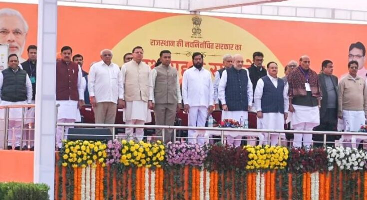 Rajasthan CM Oath: राजस्थान के मुख्यमंत्री के शपथ ग्रहण समारोह में शामिल हुए मुख्यमंत्री