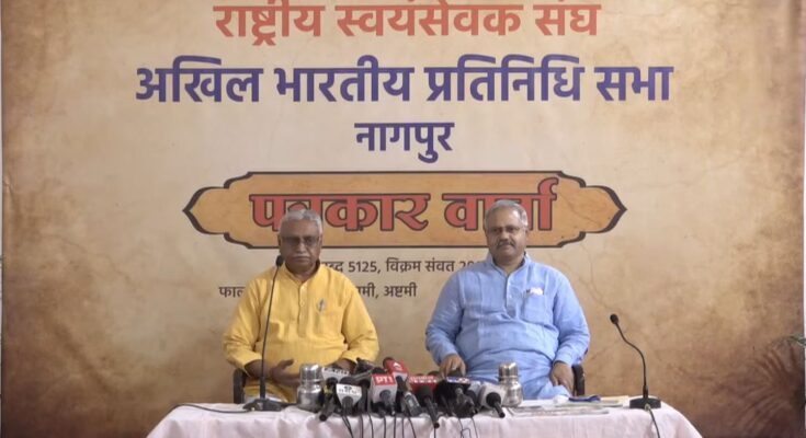 RSS: नागपुर, 15 मार्च। राष्ट्रीय स्वयंसेवक संघ के आद्य सरसंघचालक डॉ। केशव बळिराम हेडगेवार ने कहा था कि, “संघ सम्पूर्ण समाज का संगठन है”। इसका अनुभव हम गत 99 वर्षों से कर रहे हैं। वर्ष 2017 से 2024 तक संघ कार्य के विस्तार का आकलन करने से इसकी व्यापकता ध्यान में आती है। देश के 99 प्रतिशत जिलों में संघ का कार्य चल रहा है। यह बात राष्ट्रीय स्वयंसेवक संघ के सह सरकार्यवाह डॉ. मनमोहन वैद्य जी ने आज अखिल भारतीय प्रतिनिधि सभा के शुभारंभ के पश्चात स्वामी दयानंद सरस्वती परिसर में आयोजित प्रेस ब्रीफिंग के दौरान कही।