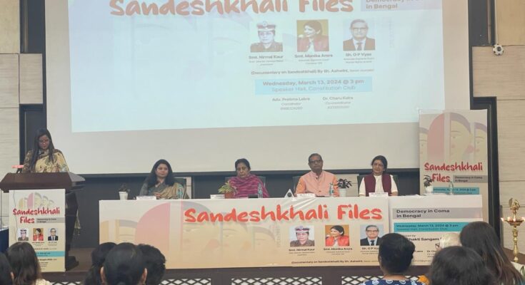 संदेशखाली फाइल्स: बंगाल का लोकतंत्र कोमा में शीर्षक वाला कार्यक्रम, यहां प्रभावी वक्ताओं का एक सशक्त जमावड़ा रहा , जिन्होंने एक महिला मुख्यमंत्री के शासन में पश्चिम बंगाल में हाशिए पर पड़ी महिलाओं की त्रासदी पर प्रकाश डाला। अधिवक्ता मोनिका अरोड़ा ने बताया कि कैसे पश्चिम बंगाल में सरकार ने सबसे कमजोर और सबसे सीमांत महिलाओं को बलात्कार और उत्पीड़न के लिए चुना जहां व्यवस्थित रूप से महिलाओं के अधिकारों और बुनियादी मानवाधिकारों की हत्या कर दी है। उन्होंने इस बारे में बात की कि कैसे सत्तारूढ़ दल द्वारा बलात्कार की शिकार महिलाओं को भाजपा पार्टी के समर्थकों के रूप में चित्रित करके इस व्यवस्थित हिंसा को वैध बताया जाता रहा । उन्होंने इस बात पर जोर दिया कि चर्चा का केंद्र अपराध होना चाहिए न कि पीड़ितों की राजनीतिक पहचान। उन्होंने दिल्ली की महिलाओं से पश्चिम बंगाल की अपनी दुर्भाग्यपूर्ण बहनों के लिए आवाज उठाने को कहा।