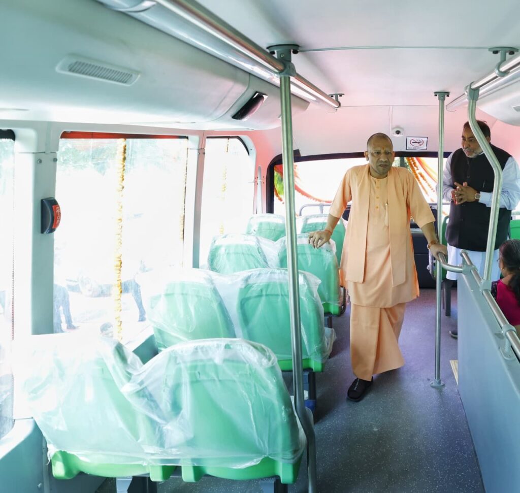सीएम योगी ने 8 डबल डेकर इलेक्ट्रिक बस, 16 इलेक्ट्रिक बस, 1 रेट्रोफिट इलेक्ट्रिक बस, 10 सीएनजी बस, दो एसी बस, 20 टाटा बस, 43 आशयर सहित 400 बीएस- सिक्स बसों और सड़क सुरक्षा के लिए 11 इंटरसेप्टर को हरी झंडी दिखाई।