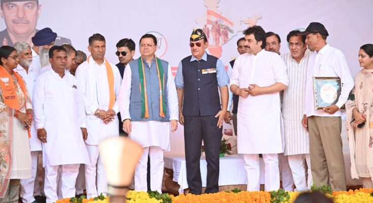 मुख्यमंत्री ने कहा कि प्रधानमंत्री जी ने साठ साल से लंबित ‘वन रैंक वन पेंशन’ की मांग को पूरा कर पूर्व सैनिकों को राहत देने का कार्य किया। इसके साथ ही देश के लिए बलिदान देने वाले हमारे रण बांकुरो की याद में राजधानी दिल्ली में सबसे महत्वपूर्ण स्थान पर सैन्य धाम बना कर सम्मान दिया। ऐसा ही एक सैन्य धाम हम देहरादून में बना रहे है। हमारे यहां चार धाम है और ये सैन्य धाम हमारा पांचवा धाम कहलाएगा।इस सैन्य धाम में देश के लिए बलिदान देने वाले उत्तराखंड के करीब 1750 योद्धाओं के घर आंगन की मिट्टी लाकर उनके बलिदान का गौरवशाली इतिहास लिखा जा रहा है।