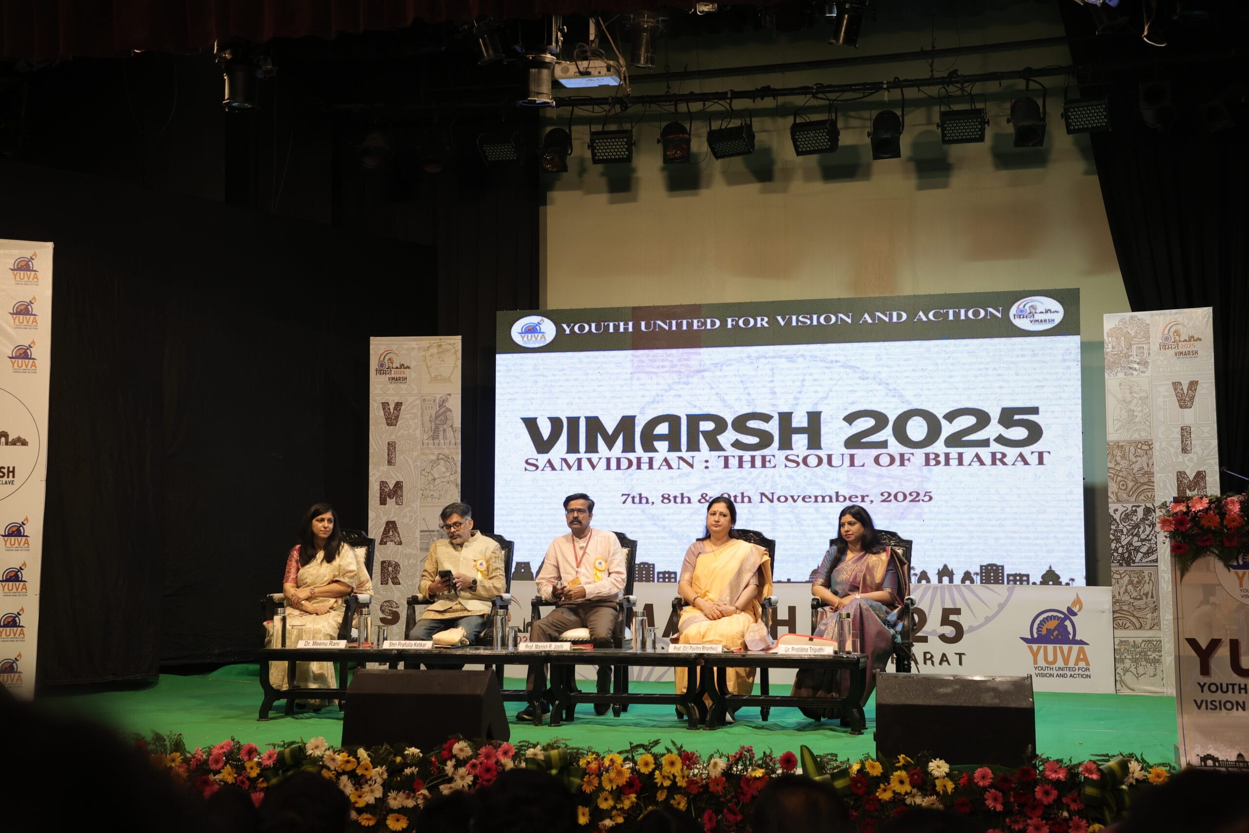 नई दिल्ली, 09 नवम्बर 2025 — यूथ यूनाइटेड फॉर विजन एंड एक्शन (YUVA) द्वारा आयोजित तीन दिवसीय राष्ट्रीय संवाद “विमर्श 2025” का समापन दिल्ली विश्वविद्यालय के कमला नेहरू कॉलेज में सफलतापूर्वक संपन्न हुआ। समापन सत्र का विषय था “संवैधानिक द्वंद्व: सांस्कृतिक मार्क्सवाद के संदर्भ में चुनौतियाँ और समाधान”, जिसमें देशभर के प्रबुद्ध चिंतक, शिक्षाविद् और युवा प्रतिनिधि शामिल हुए। सत्र की शुरुआत डॉ. प्रतिभा त्रिपाठी जी के संबोधन से हुई, जिन्होंने तीन दिवसीय विमर्श की प्रमुख चर्चाओं का सार प्रस्तुत किया और इसे “युवा विचारों के संवाद और राष्ट्र निर्माण की भावना का प्रतीक” बताया।